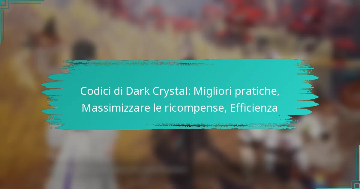 Per utilizzare efficacemente i Codici dei Cristalli Oscuri, concentrati sulla pianificazione dei tuoi riscatti, evitando errori comuni, tenendo traccia dei tuoi codici e utilizzando le risorse della comunità. Implementare queste migliori pratiche può migliorare significativamente le tue ricompense e l’efficienza complessiva.